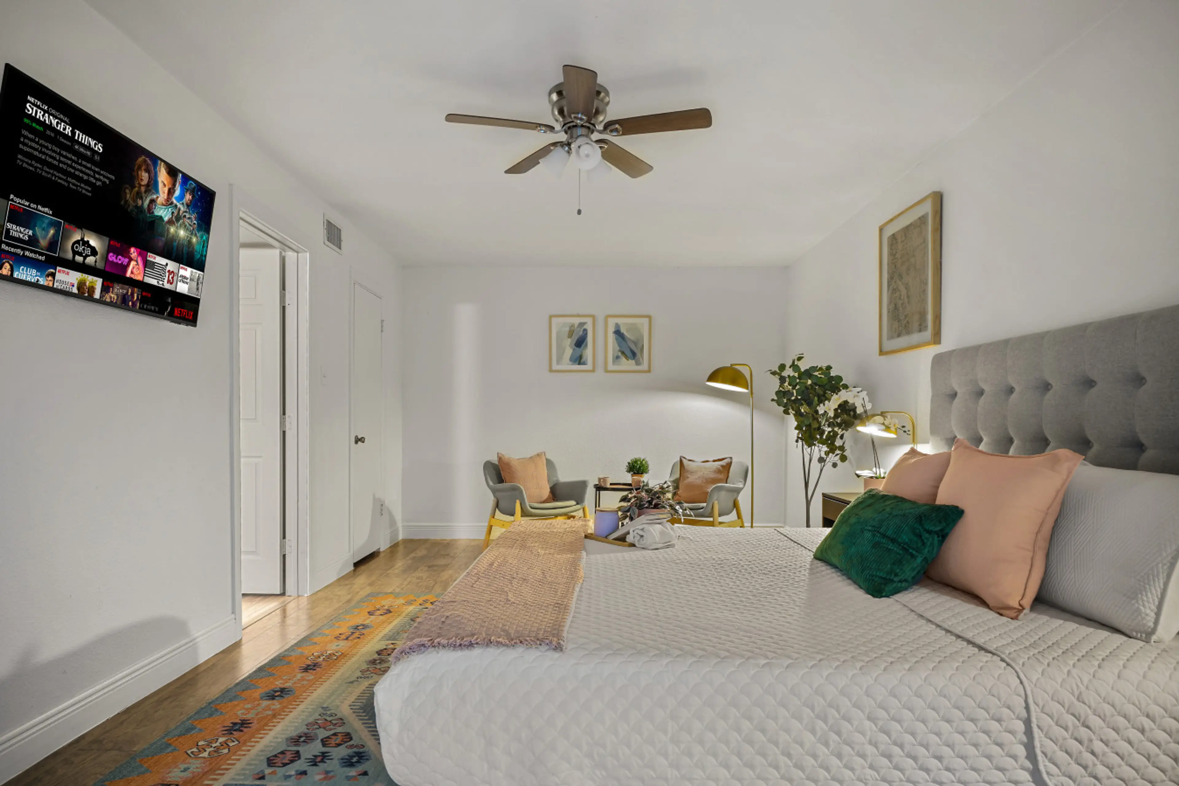 First thing I did was unplug the literal 14 scent plug ins that were turned up full blast lol my eyes still burn.Property has definitely aged and deteriorated since last photos were updated. The San Antonio mural no longer says San Antonio, the doors that the home does have either do not close or are not on the hinges. One was just leaned against the wall (the one to keep cleaning supplies and extras locked away) and we were not warned of this. The sliding barn door that I assumed was functional to cover pantry also was not functional and has to stay open. Definitely some foundation issues along with several not up to code items like electric receptacles pulled from the wall and extension cords from ceiling. The lock on the patio fencing also was broken and could not be closed in. The hot tub and pool were nice, minus the eye lash extension left by I’m assuming previous guest and occasional dead roach here and there.King bed was super uncomfy after being in it for longer than 30minutes, but the smaller one in the front bedroom was comfy!Was very nice to have a garage to park in and clickers to open and close! Full size fridge was nice to put our own waters and toddler foods as well as them providing a high chair, pack and play, and toddler dish and silverware! Towels were plentiful! And washer and dryer was very nice to have along with being provided detergents.